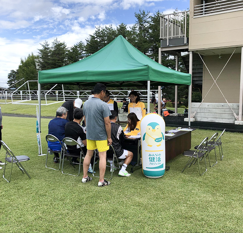 今大会も明治安田生命保険相互会社様にご協賛いただき、両日とも、交流大会参加者を対象に、血管年齢の測定と、ベジチェックによる野菜の摂取量の測定をしていただきました。毎年ありがとうございます。