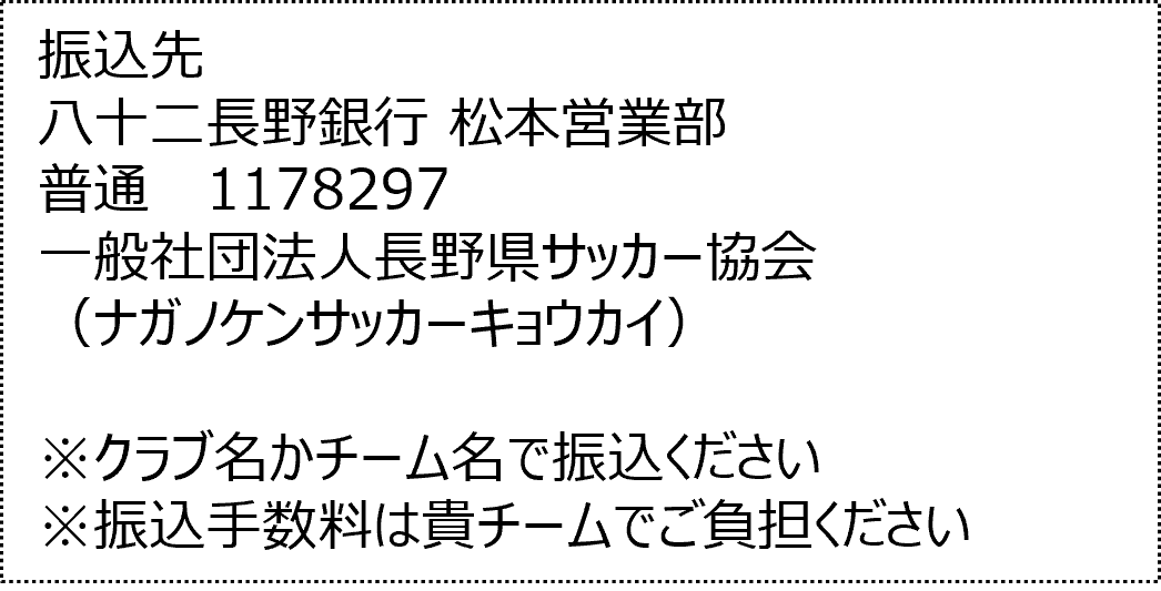 ※入金が確認できないとJFA承認作業が進まない場合があります。お早目の振込にご協力ください。