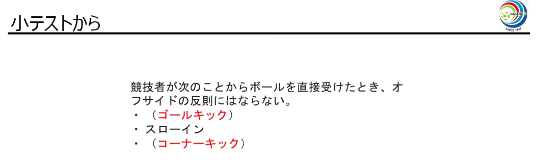 - オフサイドについてしっかり理解できたと思います。今後に活かしていきたいです。