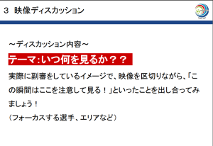 →講師の菅さんが試合中に行っていることを受講生の皆さんで共有しました。