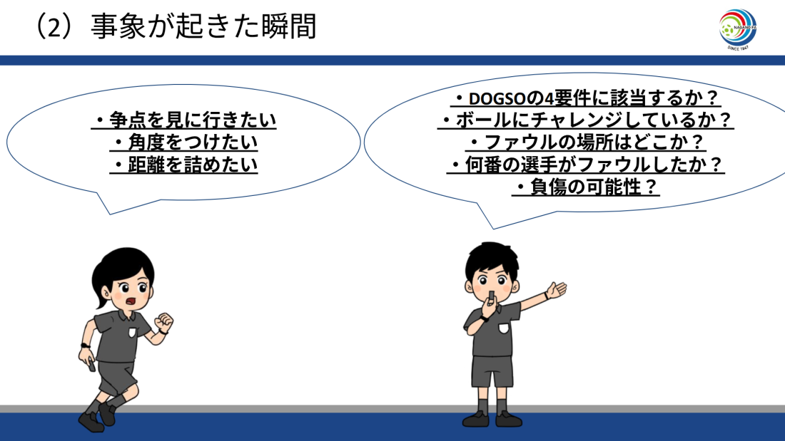 ゴール:決定的な得点機会の阻止(DOGSO)の判定を下す際に根拠を持って判定できるようにしましょう。