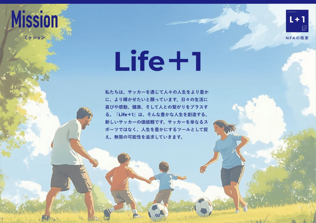NFAは、Life+1のコンセプトのもと、この好循環を生み出すことで、長野県サッカーの新たな歴史を創造します。